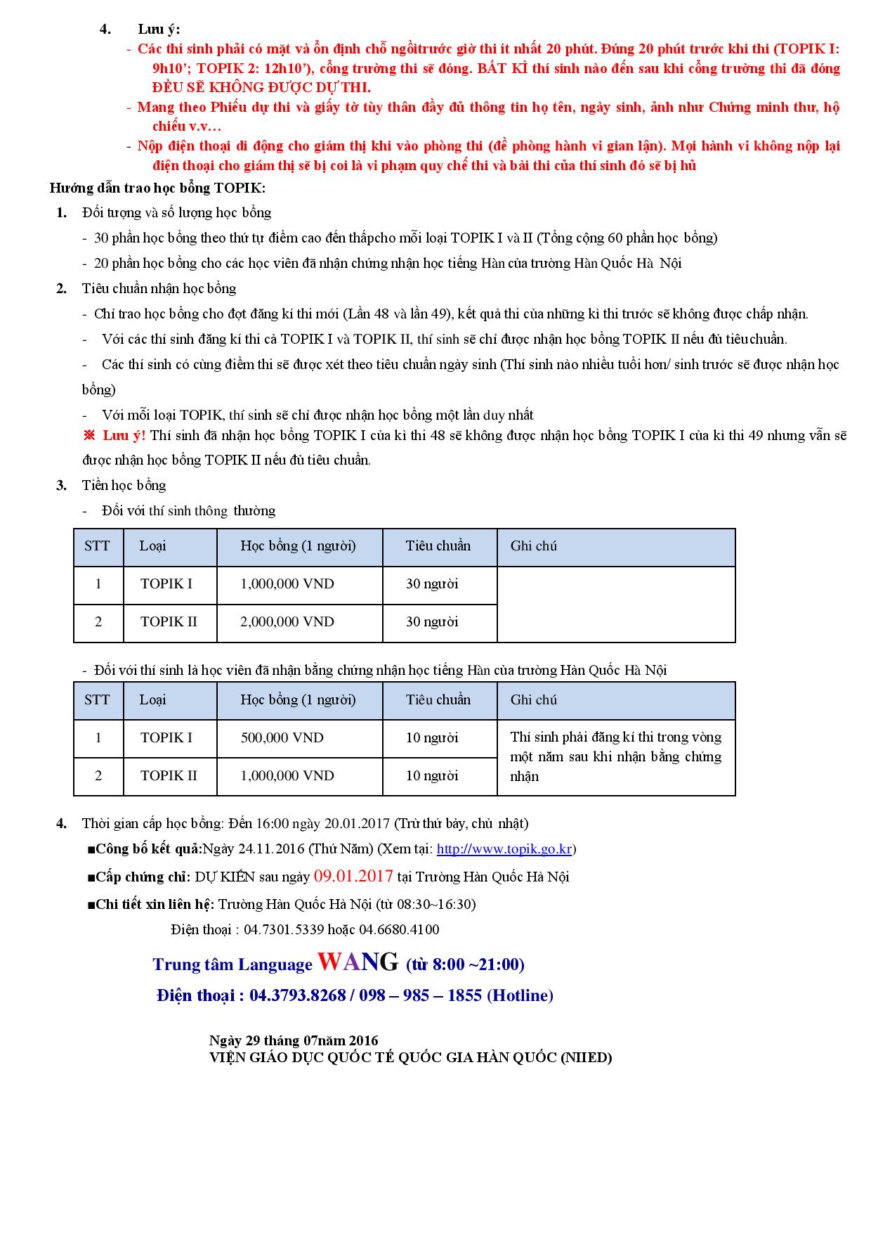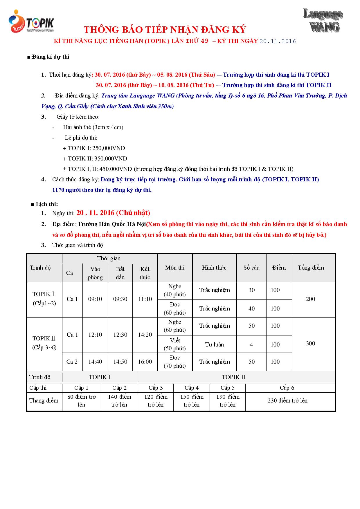 - Thông báo kỳ thi năng lá»±c tiếng Hàn lần thứ 40 năm 2015