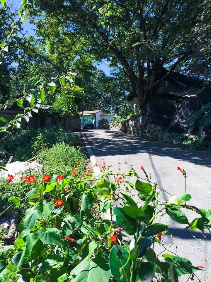 – Cách Ä‘i: Ga Dobong (ë„ë´‰ì—) trên đưá»ng tàu số 1, cá»a ra số 1, sang đưá»ng và Ä‘i bá»™ dá»c theo bá» bên phải cá»§a con suối 17 phút đến trước siêu thị Four Seasons Mart. Tại Ä‘ây có ngã ba, có thể rẽ phải để Ä‘i vào làng trên núi và Ä‘i đến chùa Dobongsa, hoặc Ä‘i thẳng theo con suối để ngắm suối và con đưá»ng quê vá»›i những bông hoa hướng dương.
